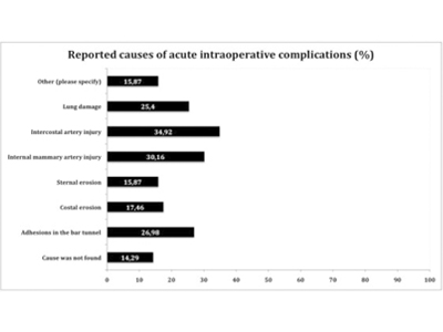 Introducción Las complicaciones del procedimiento de Nuss son bien conocidas. Sin embargo, las publicaciones sobre las complicaciones intraoperatorias y postoperatorias del procedimiento de extracción de barras (BRP) son escasas. ¿Son infrecuentes, desconocidos o no se informan correctamente? ¿Estamos listos para enfrentarlos?
